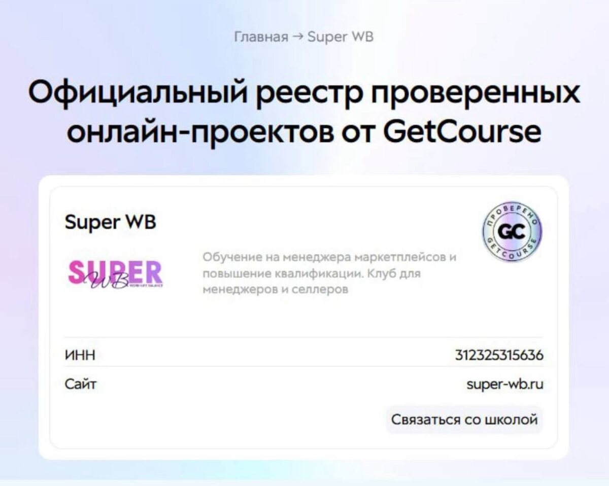 Ну это мяу 😍! Официальный реестр проверенных онлайн-проектов от GetCourse Кстати, клубу и школе 5-й год! Сегодня можно за 10р вступить, только тсссссс 🤫 отменю промо в любой момент https://superwbclub.ru Промокод «superpuper»