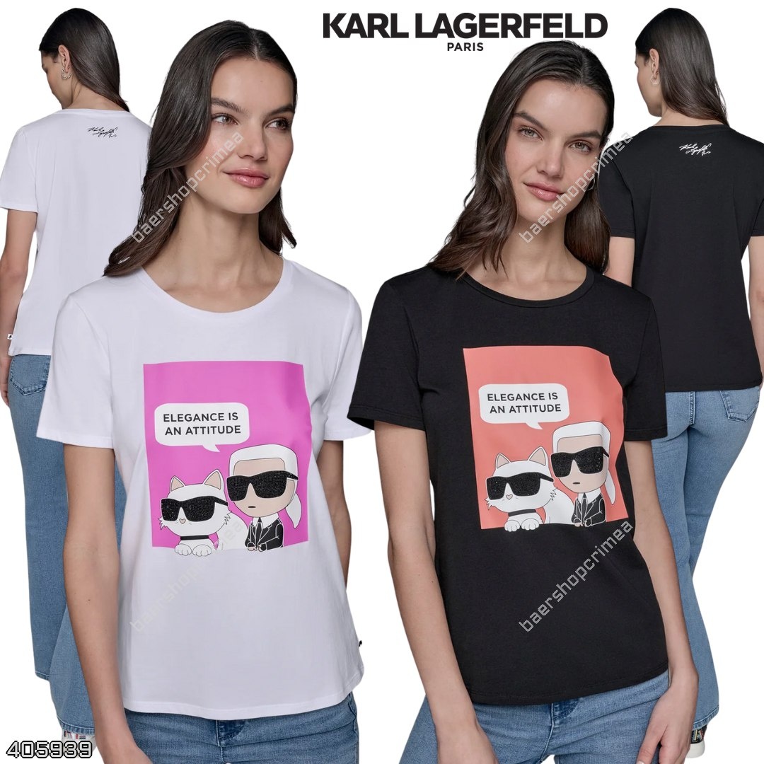 #Karl_Lagerfeld_Paris 🇺🇸 Футболка слева (женский раздел) 5733₽ ➡️ 2352₽ + вес Футболка справа (женский раздел) 5733₽ ➡️ 2386₽ + вес ID: 405939 для заказа писать - ♥️@dianabrill