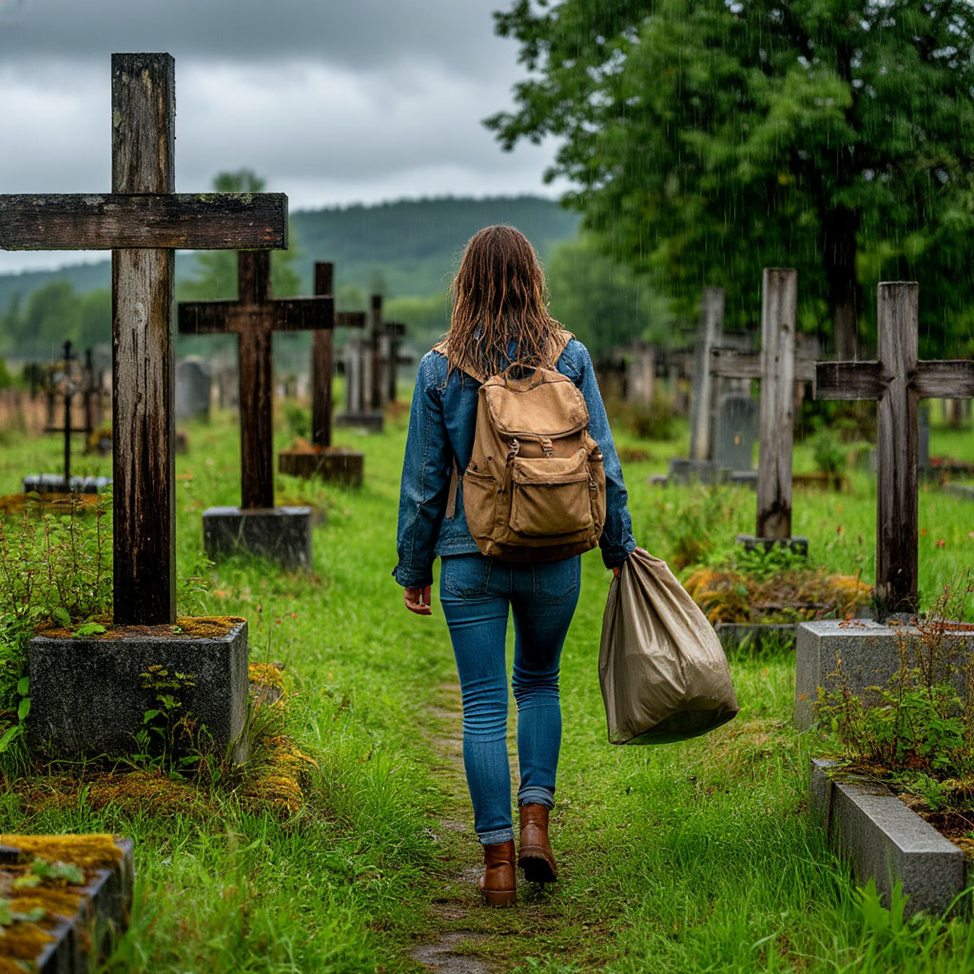 На мокрой траве Оля поскользнулась, потеряла равновесие и упала, больно ударившись головой об ограду чьей-то могилы.