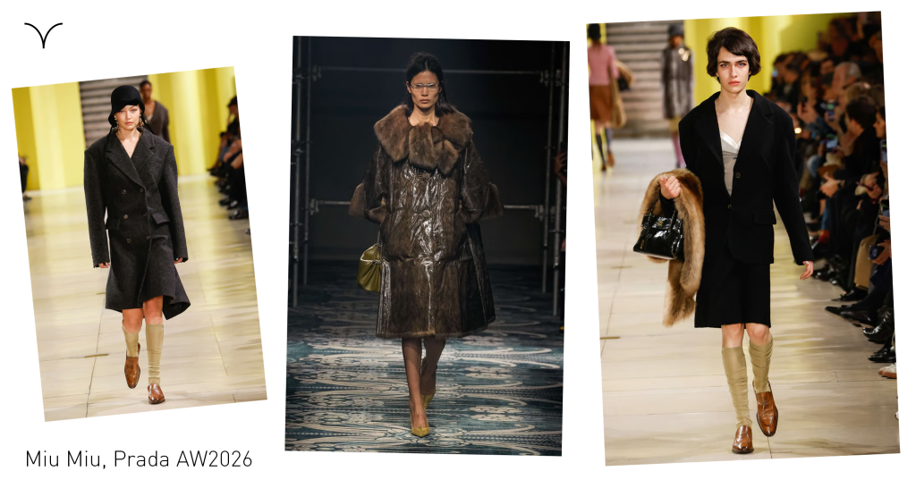 На подиумах заметен отказ от идеальных, «глянцевых» образов из соцсетей. Дизайнеры устали от шаблонов. Так, Миучча Прада (Prada, Miu Miu) иронично высмеяла типичные тренды из интернета — в коллекциях появились пальто в стиле бабушкиного гардероба и нарочито странные сочетания. Журнал Vogue назвал это «frump 2.0» — когда образ будто испорчен специально, но в этом и есть фишка.
