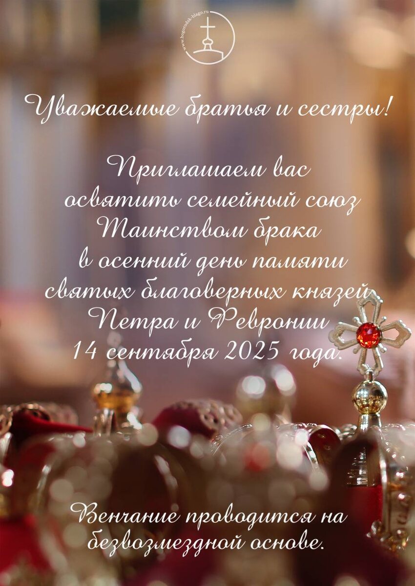 💍 Приглашаем семейные пары освятить свой союз в Таинстве брака 1️⃣4️⃣сентября