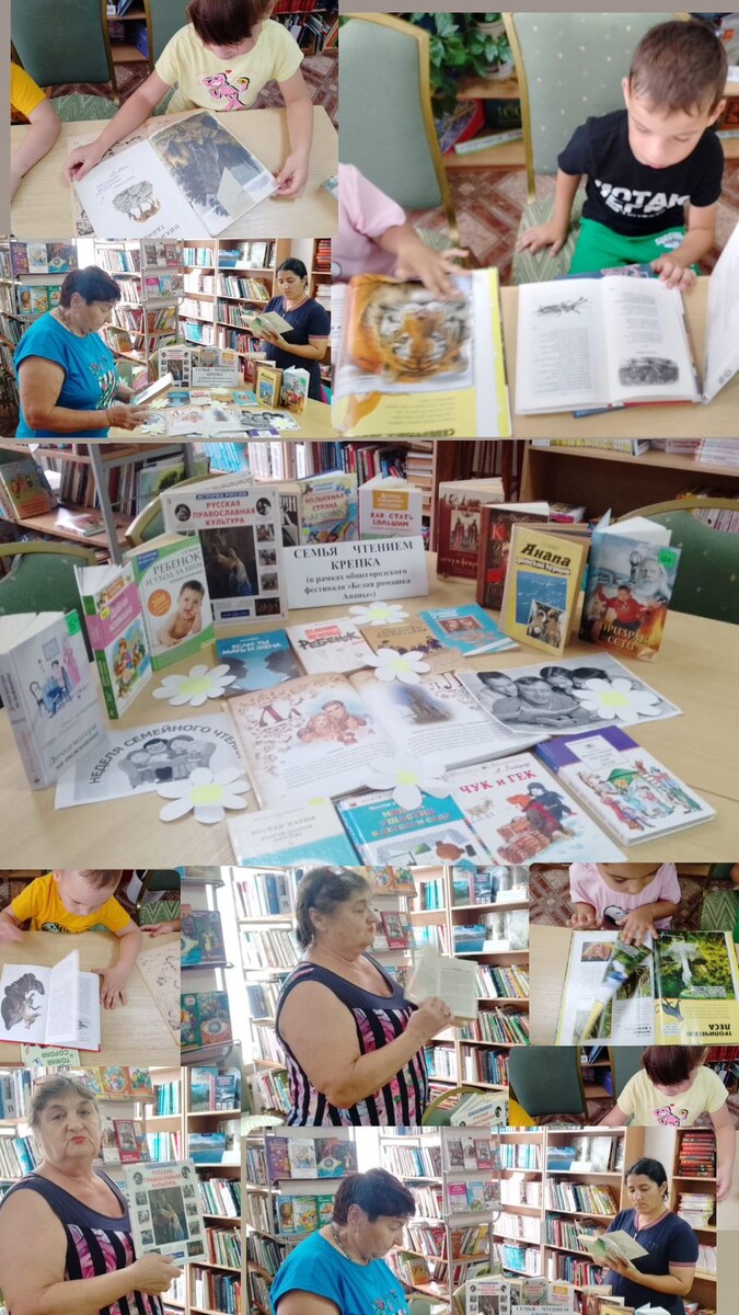 В рамках общегородского фестиваля «Белая ромашка Анапы», посвященного празднику - Дню семьи ,любви и верности ,который стартует с 4 по 8 июля ,неделей семейного чтения в Чеконской сельской библиотеке-филиале №25 для пользователей библиотеки оформлена книжно–иллюстративная выставка «Семья чтением крепка» .