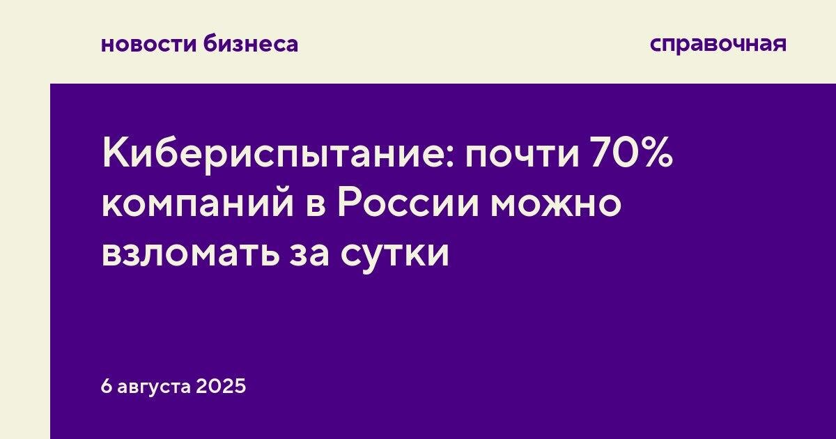 πͺ ΠΠΈΠ±Π΅ΡΠΈΡΠΏΡΡΠ°Π½ΠΈΠ΅: ΠΏΠΎΡΡΠΈ 70% ΠΊΠΎΠΌΠΏΠ°Π½ΠΈΠΉ Π² Π ΠΎΡΡΠΈΠΈ ΠΌΠΎΠΆΠ½ΠΎ Π²Π·Π»ΠΎΠΌΠ°ΡΡ Π·Π° ΡΡΡΠΊΠΈ