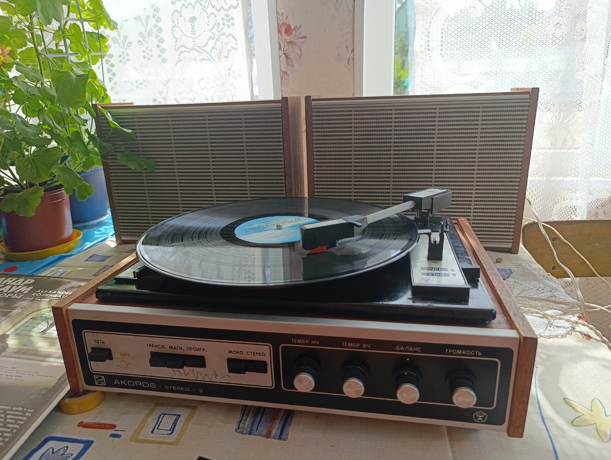 Всем привет! Немного расскажу о проигрывателе грампластинок всех форматов - Akords Stereo 2. Данный проигрыватель был произведен на Рижском ЭМЗ в 1979 году. Гарантийные талоны в инструкции сразу говорят: "Электрофон ни разу не ремонтировался!". Вот страница из газеты "Радио" выпуска 1971 года и сама схема электрофона: Проигрыватель мне достался от бабушки в конце января. По ее словам, выбросила она бы его в марте, а на крышке уже собрался сугроб пыли. Конечно, мне его стало жалко. Учусь я в 8 классе, по физике мы успели пройти только часть основы электрики - статическое электричество и заряд. Сразу же я стал разбираться что и как устроено. Колонки бабушка выбросила, так как не работала одна из них. С выбором акустики я не стал заморачиваться и купил по объявлению родные колонки с громкоговорителями 4ГД-35 производства того же года. (P.S. Вроде 4ГД-36 звучат значительно глуше из-за меньшего размера магнита, но сам не проверял). Знал бы я, что в этом проигрывателе установлены герм