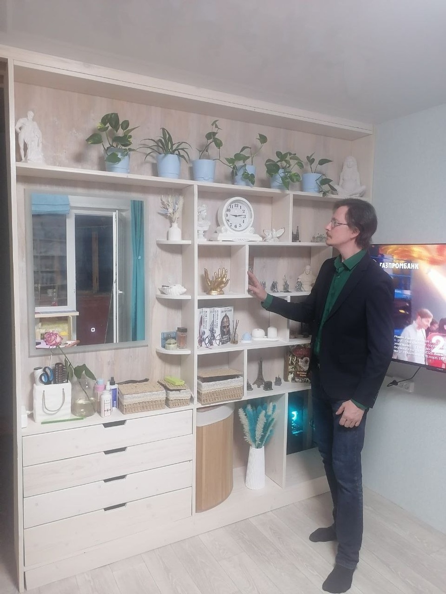Всем здрасьте, продолжаю тему ремонта и изготовления разнообразной мебели. Сейчас работаю над гостиной и что же это за гостиная без гостей. А раз гости, значит нужен стол, за котором соберётся вся семья, друзья и все, кто пожалует. Места где можно поставить здоровенный стол на постоянной основе в моей хрущевке нет, поэтому решено было сделать раскладной стол-книжку, который в сложенном виде заменяет собой тумбочку и отлично смотрится у стены. Конструкция следующая. Стол состоит из трёх частей: базовая центральная часть и два щита с каждой стороны, поднимающиеся как крылья и образующие плоскость стола. Базовая часть представляет собой параллелепипед 900х750х190 из бруска 20х50. Из его боковых сторон вынимаются рамы, поддерживающие "крылья", когда стол разложен. Они крепятся на петлях и складывая их они прячутся внутри базовой секции. Сверху лежит доска 20х190, образующая с поднятыми "крыльями" одну горизонтальную плоскость. Сами "крылья" представляет собой щиты 900х7
