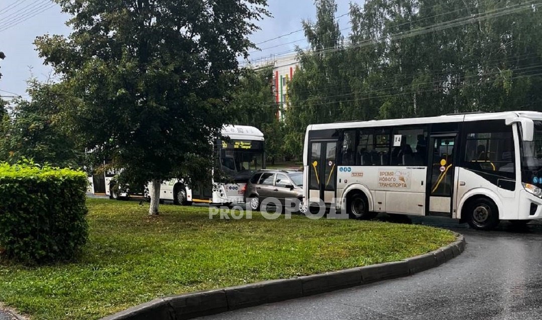 В Новочебоксарске у детской поликлиники произошло ДТП с участием автомобиля Лада Калина, автобуса №14 и троллейбуса №55