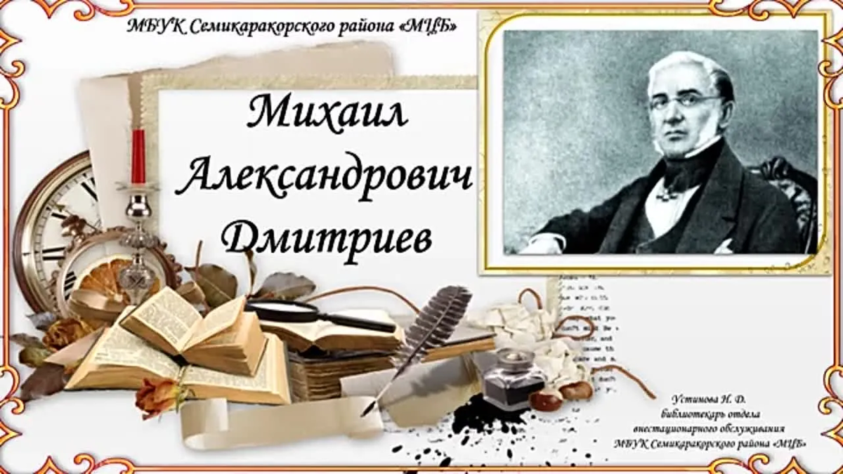 Именно так причудливо сложилось посмертье для Михаила Александровича Дмитриева, одного из самых интересных поэтов пушкинской поры. Племянник известного баснописца Дмитриева, он был знаком с Карамзиным, Жуковским, Давыдовым... При таком окружении интерес к будущим декабристам, вхождение в их круг - это было почти неизбежно. К счастью, Михаил Александрович был далёк от политики, и ограничился участием в "Полярной звезде". Стихи печатал: