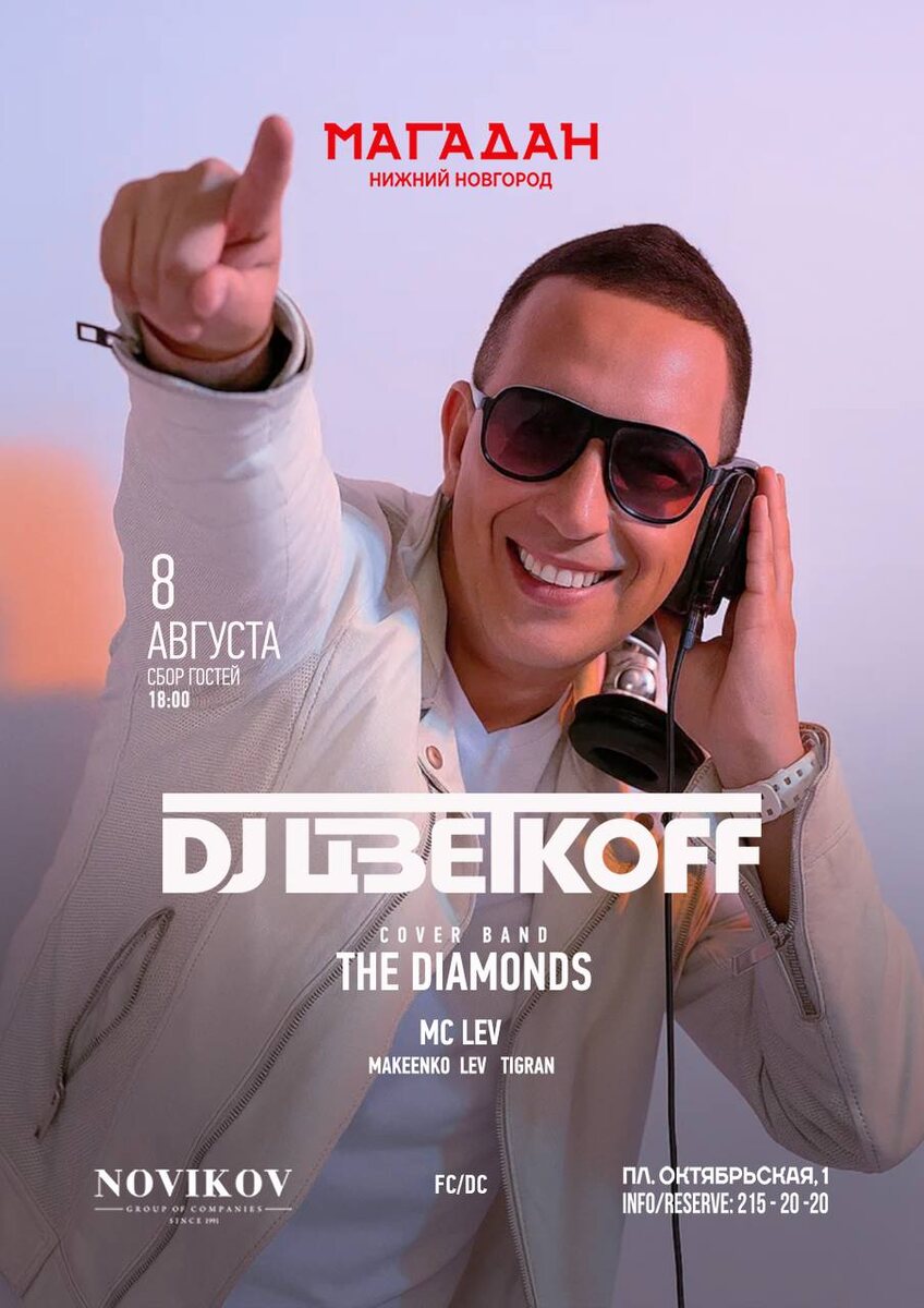 8 АВГУСТА в МАГАДАНЕ — вечер, который станет особенным! За пультами весь вечер — диджеи: ЦВЕТКОFF, MAKEENKO, TIGRAN, LEV, чьи сеты — это живая энергия, от которой танцпол оживает, а также веяер будет наполнен драйвом, благодаря кавер группе— THE DIAMONDS. Каждая минута — в движении и эмоциях. Бронируйте стол: ▫️ Онлайн по ссылке ▫️По телефону: +7 (831) 215-20-20 ▫️пл. Октябрьская, 1