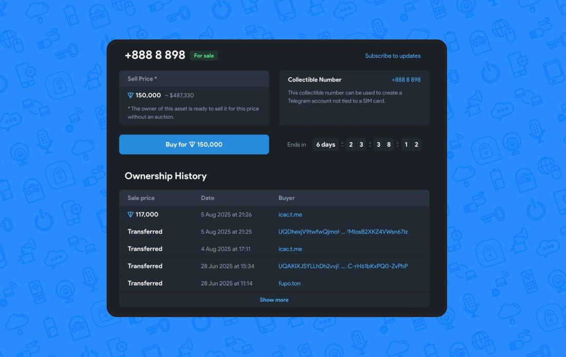 Анонимный номер в Телеграм продали за 117 000 TON (~380 000 долларов) — предыдущий владелец номера +8888898 купил его в 2022 году за 5513