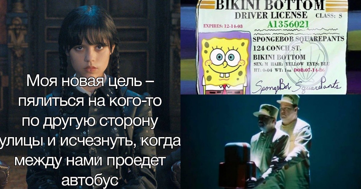 Из этого поста вы узнаете, сколько лет Спанч Бобу, откуда пошла мода на совместные поездки на самокате, какие фильмы советуют истинные киноманы, кем стал Сайфер, заключив сделку с агентом Смитом, почему инопланетяне решили сунуться на Землю именно сейчас и кое-что ещё. 1. Ещё Зорг уволил Корбина из службы такси Кстати, в ранних сериях бондианы Бонд тоже ни разу не встречался с Блофельдом. 2. 3. Ух ты, а ему уж 39! Красным цветом внизу указана дата рождения 14.07.1986 4. Поставим лайк в память о Т-1000, павшем при выполнении задания на металлургическом заводе 5. Настоящий кинолюбитель посоветовал бы в качестве лёгкой комедии шведский фильм "Логистика" 2012 года, продолжительностью пять недель. Такой фильм реально существует 6. "Рождение Эйса Вентуры в звёздную ночь" 7. Согласитесь, тогда не только трава была зеленее, но и лабубы симпатичнее 8. Черепашки-ниндзя тоже внесли существенный вклад в пропаганду пиццы с нереально тягучим сыром 9. Внизу кадр из фильма "Хищник: Планета смерти",