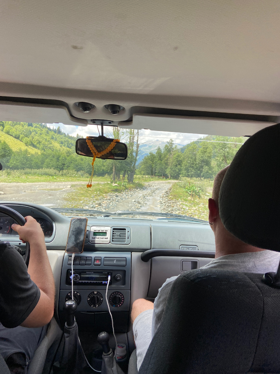 На своей машине даже не пытайтесь сюда доехать, это опасно, много валунов и даже где-то нужно ехать прям по горной реке. Если вы опытный водитель и высокий джип со специально подготовленными колесами, то вполне доедите, на обычной городской резине не стоит это делать. Хотя таких я видела тоже, их потом вытаскивают джипы.