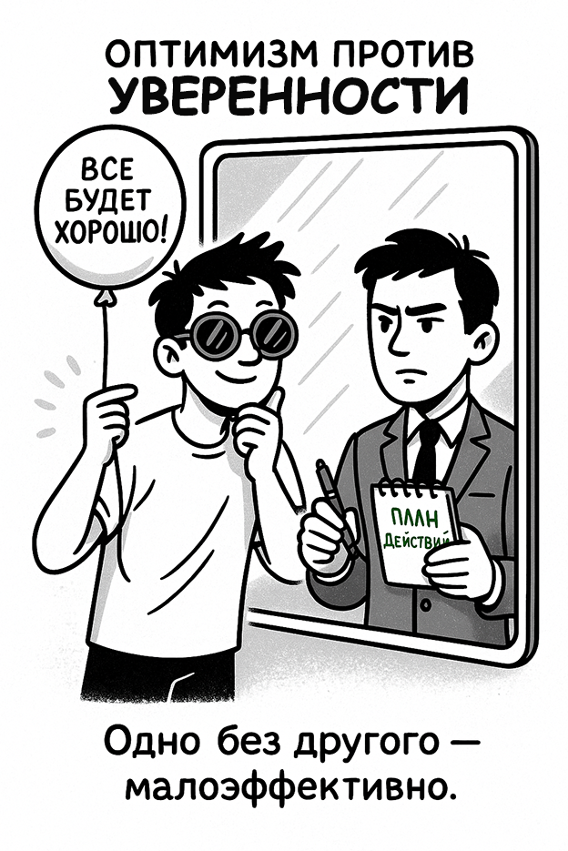 Отложите на минутку свой безудержный оптимизм в сторону. Сейчас объясню, почему это важно. Оптимизм — прекрасное качество, позволяющее видеть хорошее даже там, где его сложно заметить. Но когда он остаётся без поддержки других навыков и качеств, пользы от него будет чуть меньше, чем от зонтика в ураган. Часто оптимизм путают с уверенностью в себе. Оптимизм — это когда вы уверены, что завтра будет лучше. Уверенность в себе — это когда вы знаете, что завтра будет лучше, потому что у вас есть чёткий план и опыт решения сложностей. Жизнь — это не оркестр из исключительно радостных мелодий. Иногда играет и минорная партия. И именно уверенность в себе помогает не только наслаждаться приятными моментами, но и достойно встречать трудные времена. Уверенный в себе человек — это тот, кто уже неоднократно доказал себе, что может на себя положиться. Его не пугают проблемы, он знает: «Я уже проходил через это и справился». Финансовая стабильность — ключевая часть этой уверенности. Финансы очень б