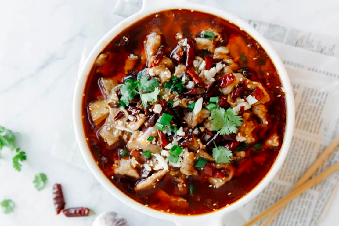 Маринованные кусочки мяса, сваренные в глубоком, насыщенном бульоне с ароматами сычуаньского перца, пасты доубаньцзян и хрустящих овощей.