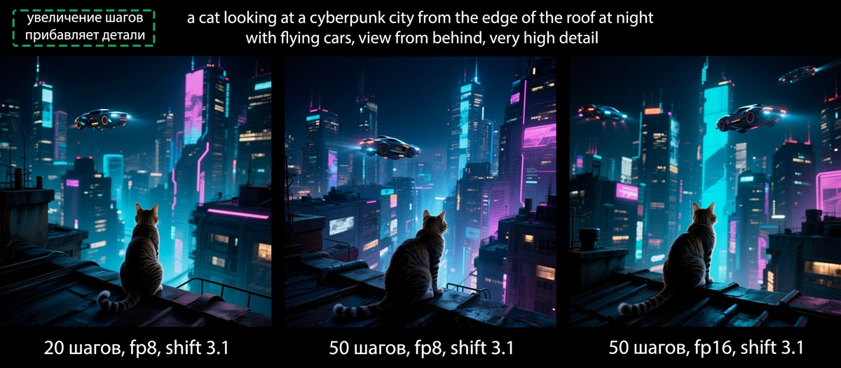 погонял ещё Qwen Image уже на fp16 (модель + энкодер) на рекомендуемых 50 шагах. * fp16 делает мелкую сетку менее заметной, и в целом качество детальнее с меньшим количеством артефактов, но сама структура объектов, например зданий, часто продолжает выглядеть сетчатой * причём fp16 не гарантирует получение правильного текста, даже если он крупный в кадре * ощущается SDшность картинки тут и там * ещё по "Гиблым" цветам есть ощущение, что учили на генерациях из gpt-image * малая вариативность результатов * fp16 не решает проблему с кожей и естественностью снимков, но помогает игра с shift, sampler name, и scheduler * fp16 + 50 шагов это медленно (4,5 мин или 5,31 сек/ит на картинку) и часто мало чем отличается от 20 шагов на fp8 (58 сек или 2,5 сек/ит), что тоже медленно в сравнении с тем же Flux.