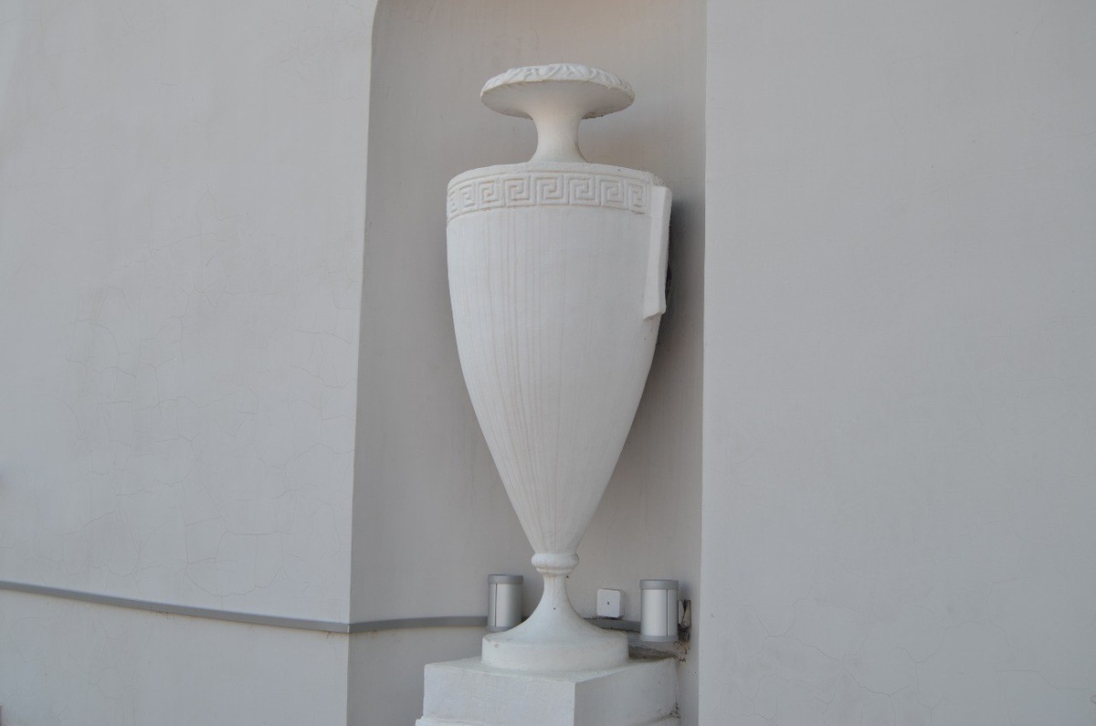 А вот и ответ на нашу фотозагадку: вазон (на пару со своим "близнецом") украшает ДК "Знамя труда