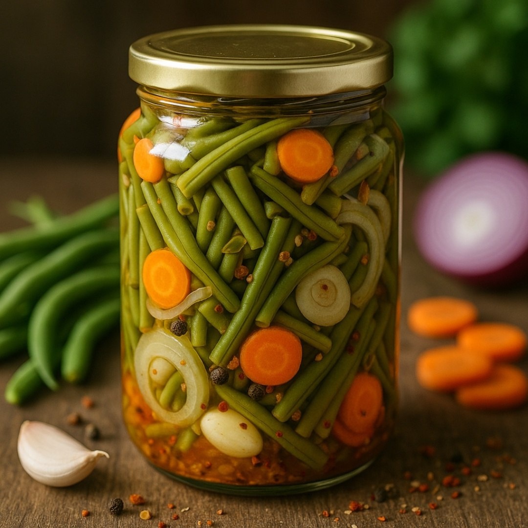 Стручковая фасоль по-корейски Ингредиенты⤵️ 🔸Стручковая фасоль – 1,5 кг 🔸Морковь – 2 шт. 🔸Чеснок – 1 головка 🔸Красный лук – 1 шт. 🔸Растительное масло – 100 мл 🔸Соевый соус – 50 мл 🔸Уксус 9% – 50 мл 🔸Сахар – 2 ст. л. 🔸Соль – 1 ст. л. 🔸Красный перец – 1 ч. л. 🔸Кориандр молотый – 1 ч. л. 🔸Зира – ½ ч. л. Приготовление🫘 1. Фасоль нарезать, отварить 5 мин, охладить. 2. Морковь натереть, лук нарезать, чеснок измельчить. 3. Разогреть масло со специями (зира, кориандр), снять с огня, добавить остальные приправы. 4. Смешать овощи с заправкой, дать настояться 2–3 часа. 5. Разложить по банкам, залить маринадом. 6. Стерилизовать 15 мин, закатать, укутать до остывания. Рецепт дня #стручковая_фасоль #фасоль_по_корейски #морковь #лук #чеснок #маринад #заготовки #консервации