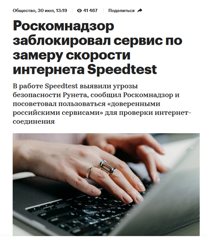 Всем привет, столкнулся сегодня с необходимостью замерить скорость соединения и с удивлением обнаружил, что оказывается SPEEDTEST от Ookla отлетел в бан. Это конечно расстраивает, но не так сильно, как многие другие инициативы наших и забугорных чиновников. Да и в целом, могу понять логику данного решения. Что же, надо искать альтернативы и аналоги, которые помогут в решении задачи! 😊 Позиционирует себя, как российский сервис. Нет рекламы. Как поменять сервер приема\передачи, я увы не нашел. Очень странно видеть 5 мегабит на скачивание и 53 на отдачу. Создалось впечатление, что от новой, невиданной нагрузки после бана спидтеста, ребята сами не вывозят своим исходящим каналом. Тут уже интереснее. Тоже российский сервис и даже есть в реестре отечественного софта. Рекламы нет, разработан вроде бы Ростелекомом. Тест можно выкатить «из коробки» или сделать небольшую кастомизацию. Можно выбрать сервер, в списке множество городов. Хотя замеры до Москвы показали 136 мегабит на скачивание и 59