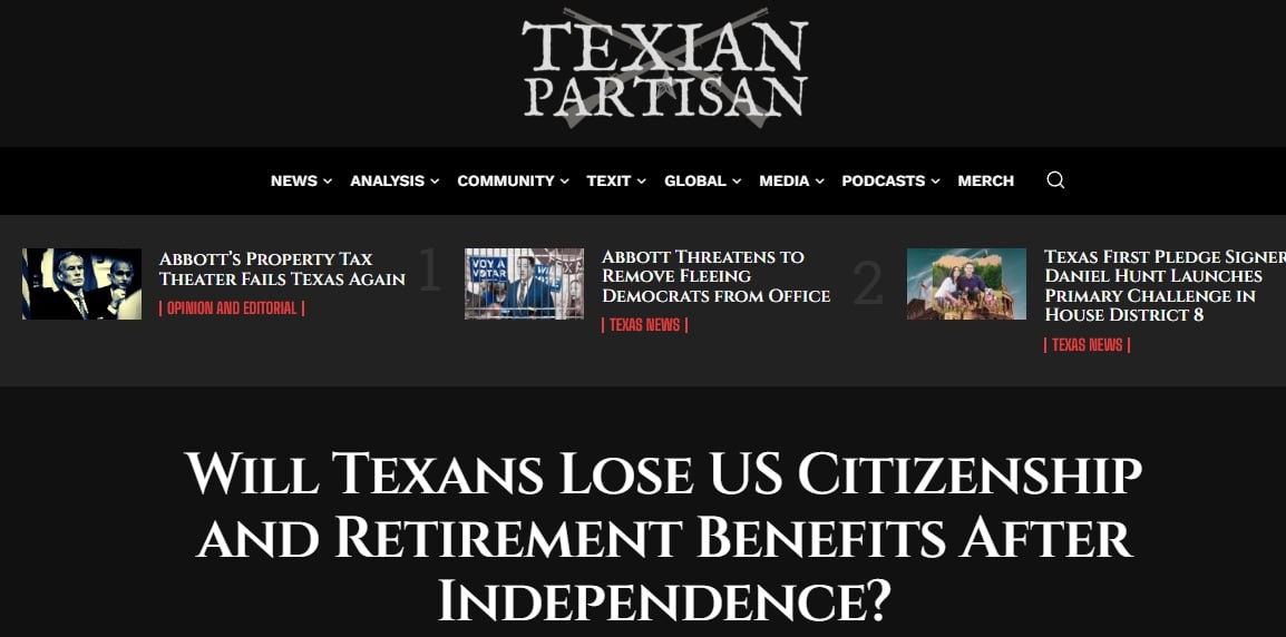 Движение за независимость Техаса (TNM) рассчитывает на выход из США по договору с Вашингтоном с сохранением гражданства США