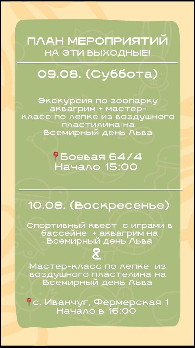 🐘🌿 План мероприятий на выходные в зоопарке «Баба Фрося»! 🌿🐒