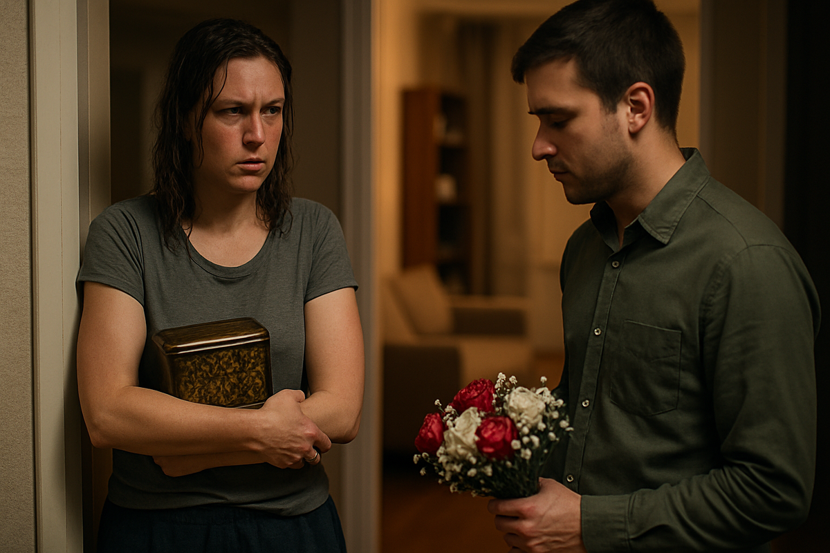 Когда он вечером вернулся домой с букетом белых роз, Инга уже стояла в коридоре, скрестив руки. Мокрые волосы, домашние штаны и красные от усталости глаза — в этом её виде не было ничего праздничного.