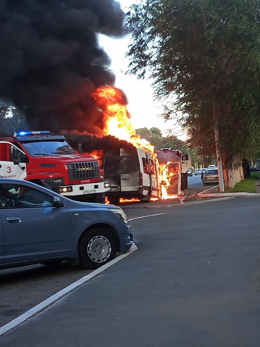 На проспекте Братья Коростелевых сгорела маршрутная газель Бузулук Оренбург, пострадавших нет