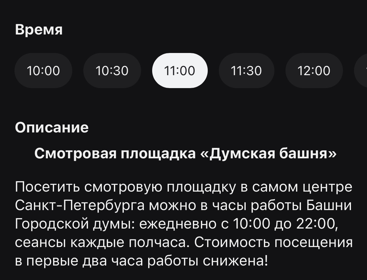 Честно говоря, билет на смотровую площадку Думской башни и так недорогой. Но мы с вами тигры и тигрицы и экономим всегда, если есть возможность. Тут она есть: в первые 2 часа посещения в будние дни билет стоит не 500, а 300 рублей. Плюс сервисный сбор 10%, соответственно 330₽ против 550₽. Экскурсия длится полчаса, за 330₽ можно выбрать время на 10:00, 10:30, 11:00, 11:30. Выбираем время, которое нам подходит и оплачиваем билеты картой с кешбеком, у меня оптимальным вариантом был кешбек 7% на афишу в Альфа-банке, билет обошелся в 309₽. Самый большой кешбек 20% на афишу в Сбере я уже потратила на концерт, об этом расскажу в другой статье) Стоит ли посетить смотровую площадку Думской башни? Мой ответ - да! Начинается всё с высоченной узкой и достаточно крутой винтовой лестницы, на входе пикают билет, и ты устремляешься ввысь на 233 ступеньки. Когда почти добираемся до вершины, можно посмотреть механизм часов Думской башни. Я почти 5 лет проработала в офисе на Невском проспекте и часто в