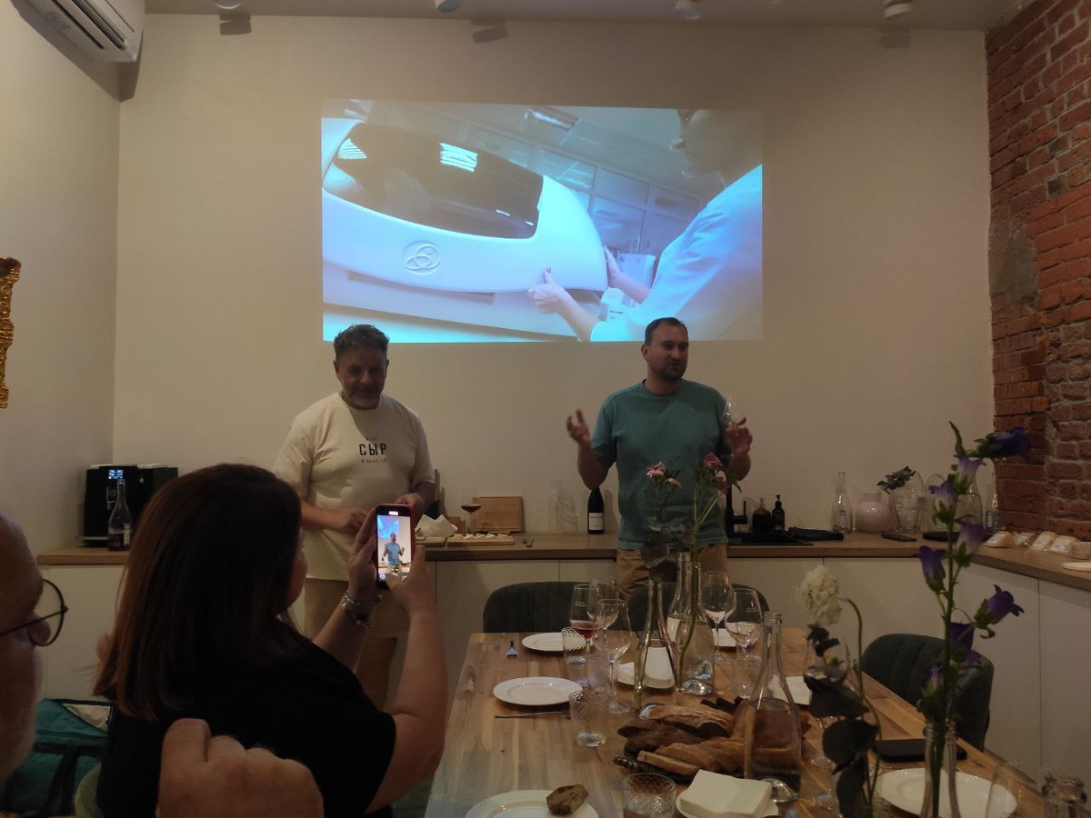 Ср. - СОЧЕТАНИЯ Алексей Андреев и Михаил Николаев устроили парад сочетаний сыра, вина и хлеба в московском винном бутике "Николаев и сыновья. Долина Лефкадия" для гастрономических критиков и журналистов. Новый сырный проект Лефкадии демонстрирует огромные успехи не только в воспроизводстве уникальных французских стилей, но и в новой уникальной российской стилистике. О лучших сочетаниях сыров и вин Лефкадии я ещё напишу в дальнейшем.