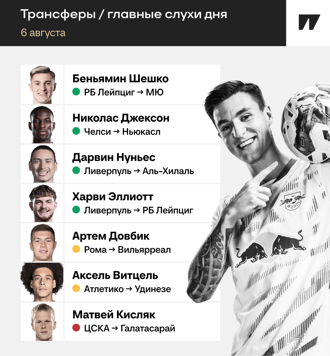 Когда-нибудь Беньямин Шешко все-таки окажется в «Ман Юнайтед». Личный контракт до 2030-го согласован, но переговоры между клубами продолжаются. «МЮ» повысил предложение до 80 млн евро без учета бонусов, до этого хотели уговорить «Лейпциг» на 75+10 млн.