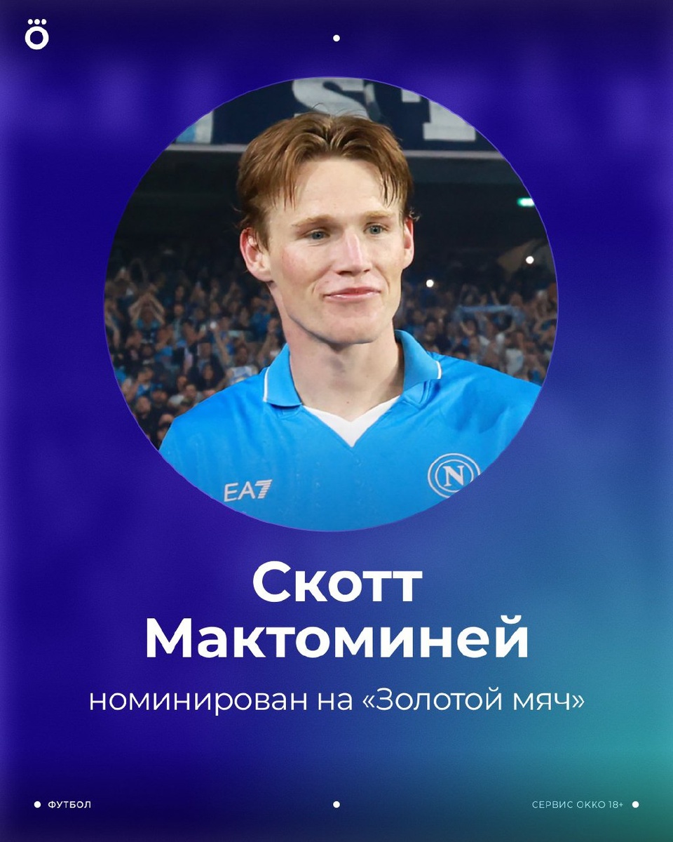 Скотт Мактоминей попал в число номинантов на «Золотой мяч» 🏆 Полный список станет известен завтра, но этим инсайдом журналист Сэм Си поделился уже сегодня. В прошлом сезоне шотландец забил 16 мячей в 48 матчах за «Наполи». Заслужил? 🙌