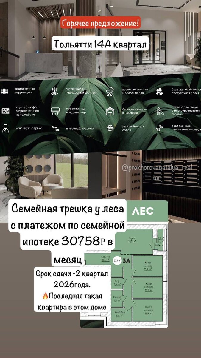 Освободилась ПОСЛЕДНЯЯ семейная трешка в доме у леса, сдача уже во 2 квартале 2026 года! 🌳