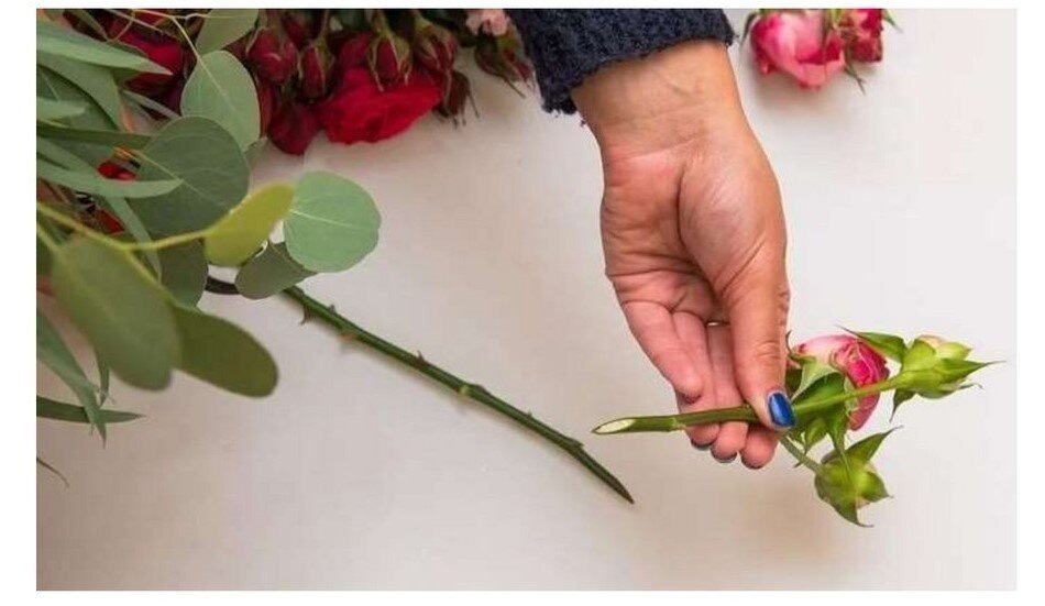 Перед тем как поставить букет в воду, зачистите стебли: снимите все листья и шипы, которые могут оказаться в воде. Влага, контактирующая с зеленью, приводит к гниению и ускоряет увядание цветов. Шипы удаляйте осторожно, чтобы не повредить кору — глубокие надрезы могут нарушить капилляры, и растение не будет получать влагу. Используйте: Нельзя использовать тупые ножи, ножницы или ломать стебли руками — это приводит к пережатию сосудов и быстрому увяданию. Всегда подрезайте цветы по одному, чтобы контролировать угол и исключить попадание воздуха в сосуды. Даже если цветы только что срезаны, обновите срез перед постановкой в вазу. Через пару минут без воды он начинает зарастать, образуя пленку, которая мешает впитыванию влаги. Лучше всего обрезать цветы под проточной водой или полностью погрузив в воду — так вы избежите воздушных пробок в капиллярах. Букет лучше поставить в прохладное светлое место, избегая солнца, сквозняков и батарей. Если вы хотите сохранить цветы до важного момента —