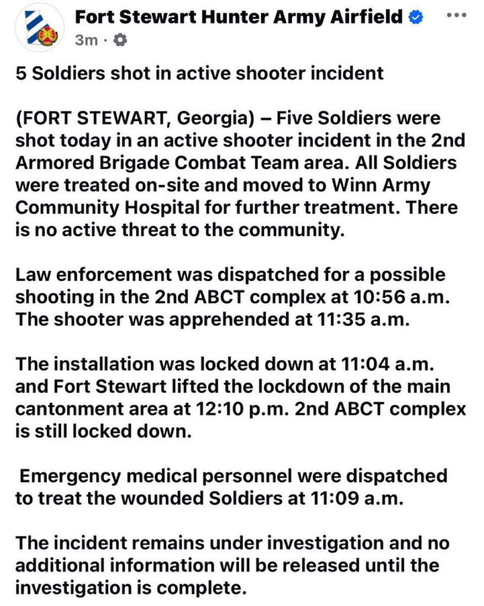 ❗️Five soldiers SHOT in Fort Stewart
