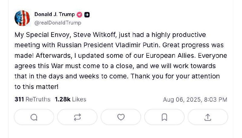 πΊπΈ Π’ΡΠ°ΠΌΠΏ Π·Π°ΡΠ²ΠΈΠ», ΡΡΠΎ Π‘ΡΠΈΠ² Π£ΠΈΡΠΊΠΎΡΡ ΠΏΡΠΎΠ²ΡΠ» ΠΏΡΠΎΠ΄ΡΠΊΡΠΈΠ²Π½ΡΡ Π²ΡΡΡΠ΅ΡΡ Ρ ΠΠ»Π°Π΄ΠΈΠΌΠΈΡΠΎΠΌ ΠΡΡΠΈΠ½ΡΠΌ ΠΡΠ΅Π·ΠΈΠ΄Π΅Π½Ρ Π‘Π¨Π: Β«ΠΠΎΡΠ»Π΅ ΡΡΠΎΠ³ΠΎ Ρ ΠΏΡΠΎΠΈΠ½ΡΠΎΡΠΌΠΈΡΠΎΠ²Π°Π» Π½Π΅ΠΊΠΎΡΠΎΡΡΡ