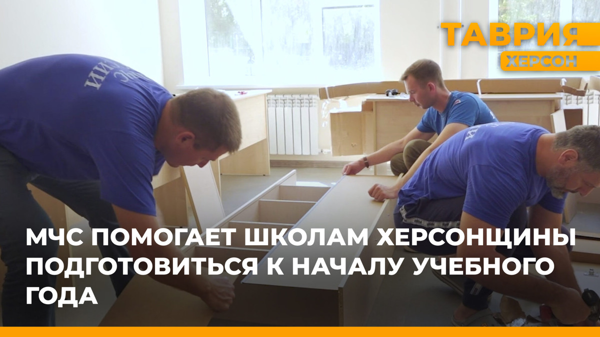 В преддверии нового учебного года сотрудники Главного управления МЧС России по Херсонской области оказывают помощь образовательным учреждениям региона, сообщают корреспонденты ТРК «Таврия». По запросам директоров, спасатели посетили несколько школ, где помогли собрать мебель и привести в порядок территории. Только в одном кабинете сотрудники МЧС собрали более 10 предметов мебели, используя собственные инструменты. В Генической санаторной школе-интернате, где завершается ремонт, спасатели провели полдня, помогая собрать мебель. После работы в школе-интернате группа из восьми человек отправилась в школу в селе Счастливцево, где привела в порядок территорию учебного заведения. Ранее ТРК «Таврия» сообщала, что специалисты МЧС проверили готовность школы № 4 Геническа к 1 сентября. Во время инспекции побеседовали с сотрудниками учебного заведения, оценили уровень пожарной безопасности, проверили работоспособность систем противопожарной защиты, наличие и состояние первичных средств тушения, а