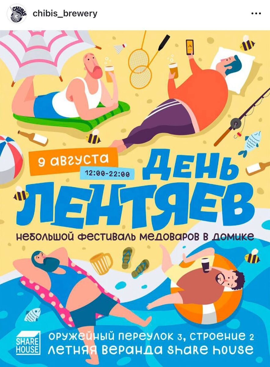 День лентяев с безлимитным пивом и закусками пройдет в Москве 10 августа. Участникам предстоит одно задание: расслабляться, наслаждаться пенным и не делать ничего. Организаторы приготовят лазурный мед с ананасом и корицей, а также новые вкусы медовухи в атмосфере полного релакса. ────────── ⚡️Важные новости – без лишнего шума!⚡️ Подпишись на канал и получай только суть: оперативно, чётко, по делу! 👉 ИнфоСплетник | @infospletnik