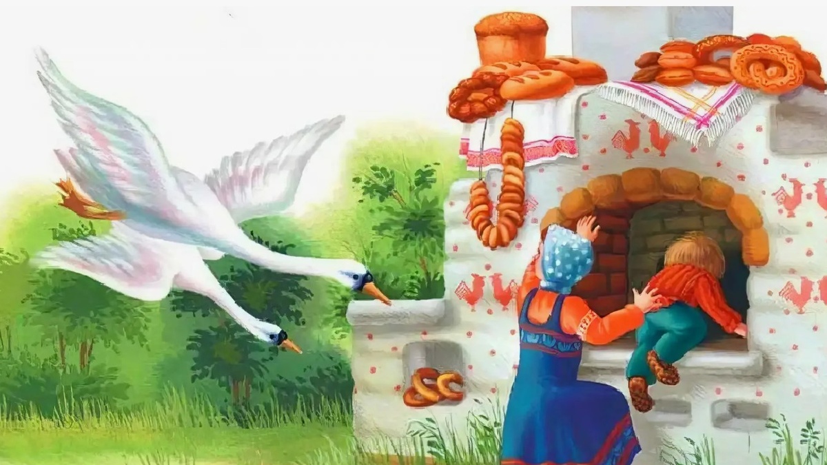 Сюжет: Девочка ищет младшего брата, которого унесли из дома Гуси-лебеди. В процессе ей помогают печка, речка и яблонька, но девочка должна выполнить их просьбы, например, съесть кусочек пирога и выпить киселька с молочком.