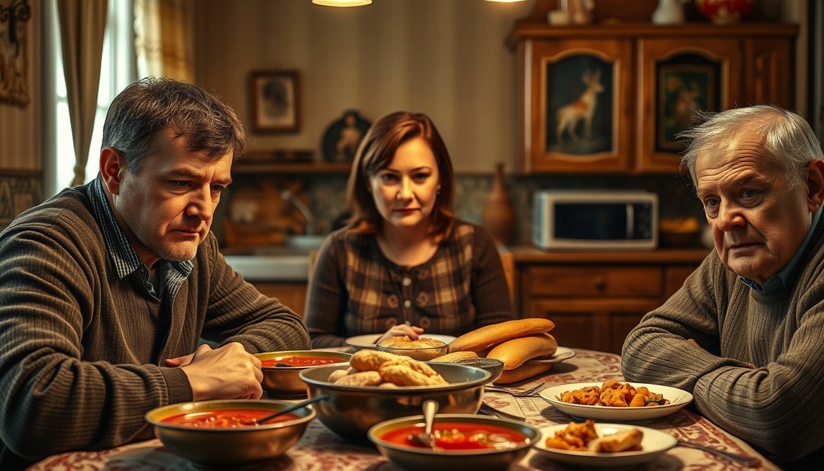 Максим закатил глаза, но телефон убрал. Рита разливала борщ по тарелкам, и кухня наполнилась знакомым ритмом семейного ужина: звяканьем ложек, приглушённым разговором, скрипом стульев.
