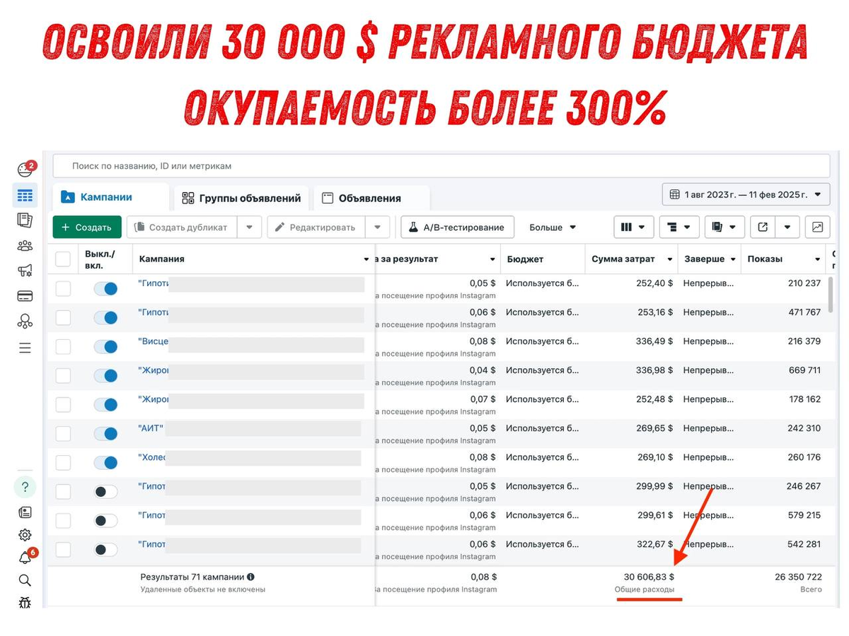 Еще один клиент, с которым работаем с 2023 года. Все ждал круглой суммы в открученном рекламном бюджете, чтобы цифра красивая была. Дождался.