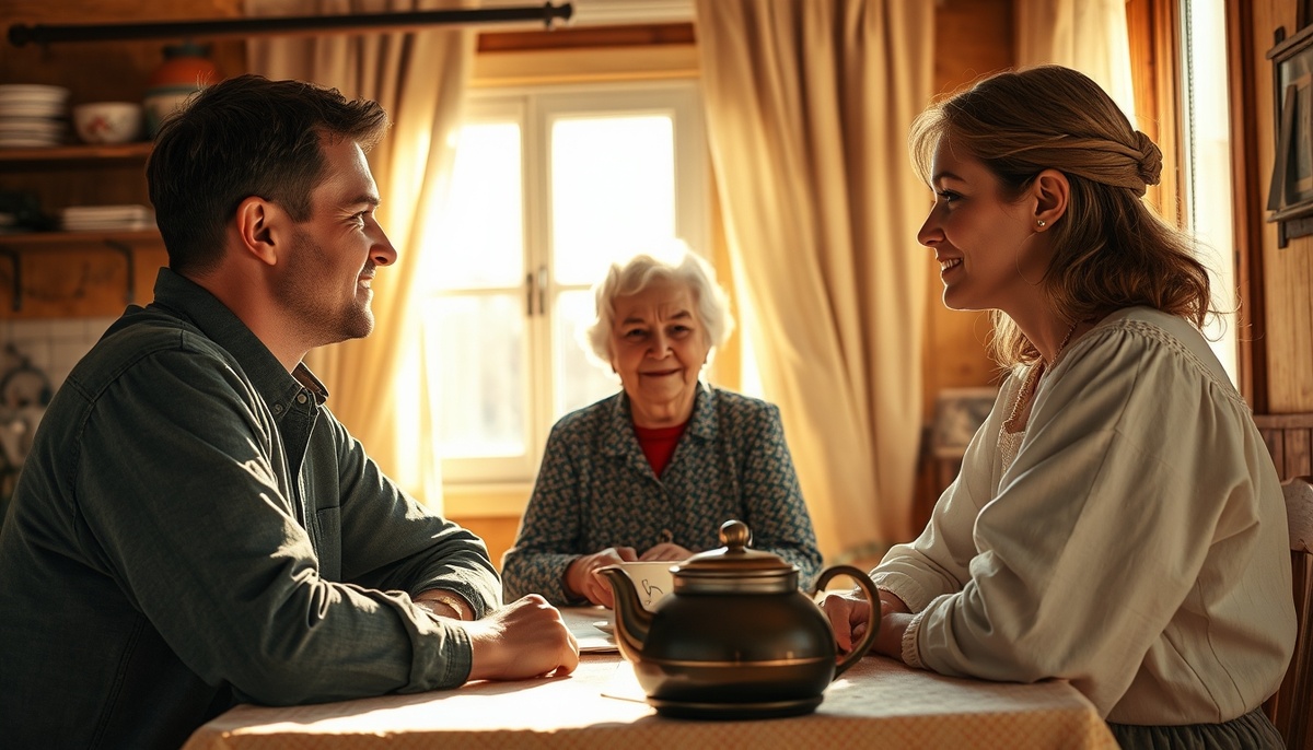 — Ну вот и хорошо, — бабушка хлопотала у духовки. — Все дома. Серёжа, мой руки, садись. Пирожки с капустой ещё горячие.