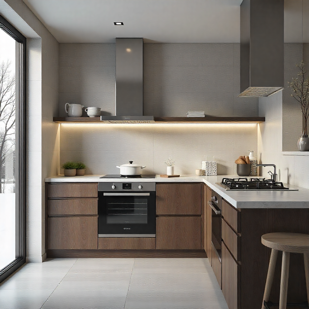 Стандарт: 60-70 см от столешницы до навесных шкафов. ❌ Не защищена розеточная зона → брызги масла.