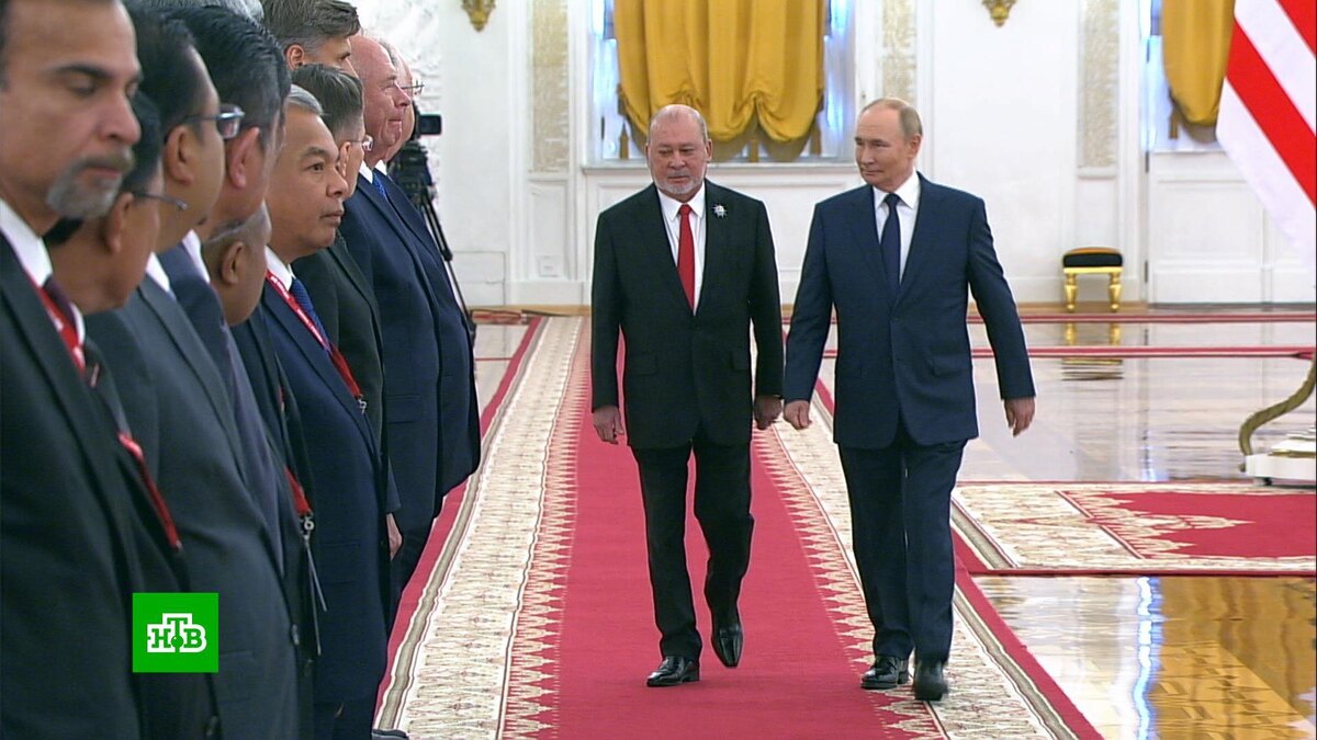 После исполнения гимнов России и Малайзии лидеры двух стран представили другу другу свои делегации. Малазийская, кстати, в по-царски помпезных залах Большого Кремлевского дворца чувствовала себя довольно уверенно. Все же они — королевские подданные. А в Малайзии уникальная монархия. Девять правителей ее штатов по очереди становятся королями на пятилетний срок с тех пор, как Малайзия получила независимость от Великобритании в 1957 году.