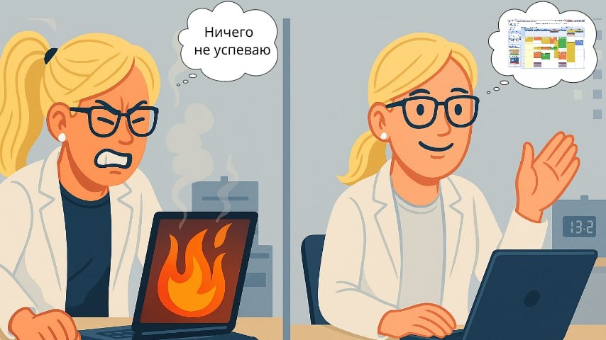 📌 Повторяющиеся дела, одним цветом (консультации, командные встречи) приучают мозг к порядку. Со временем стресс уходит совсем.