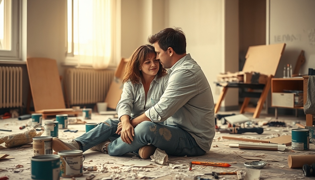 Мы стояли обнявшись в этой полуразрушенной комнате, и я думала: наверное, вот так и происходят важные вещи. Not через грандиозные жесты и красивые слова, а через ссоры из-за обоев, через усталые руки и пыль в волосах, через готовность сказать друг другу правду.
