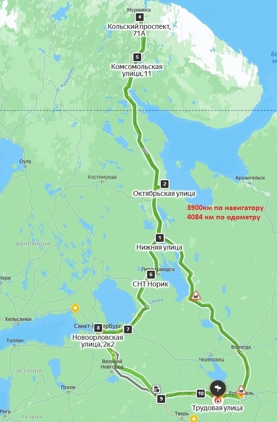 ✏️ Дальняк.рф™: Нормальный дальнячок получился, планировал только прокатиться до старой Ладоги, но друзья предложили прокатиться дальше😁👍С начала прокатились до Медвежьегорска до места съёмок фильма "Любовь и голуби" остановились хорошем месте на берегу Онежского озера, искупались, отдохнули и с утра опять в путь, Павел Морозов попути записывал видео и выкладывал у себя в группе, очень веселая компания была👍😁, дальше ориентировались по Мотокарта.рф смотрели и договаривались о ночевках заранее на байк постах, заскочили по пути искупаться в белом море Беломорске, в Мончегорске оставили свой прицеп на байк посту "Лось Вегас" и помчали в Мурманск остановились там на байк посту в "Мотопорт" пообщались с другими мотопутами, и с утра наши друзья помчали до Териберки, мы не поехали из за погодных условий обещали сильный дождь, у меня небыло дождевика, мы решили ехать обратно в Мончегорск за прицепом и на отдых в "Лось Вегас" друзья вернулись под вечер, с утра отдохнувший мы двинули в сто