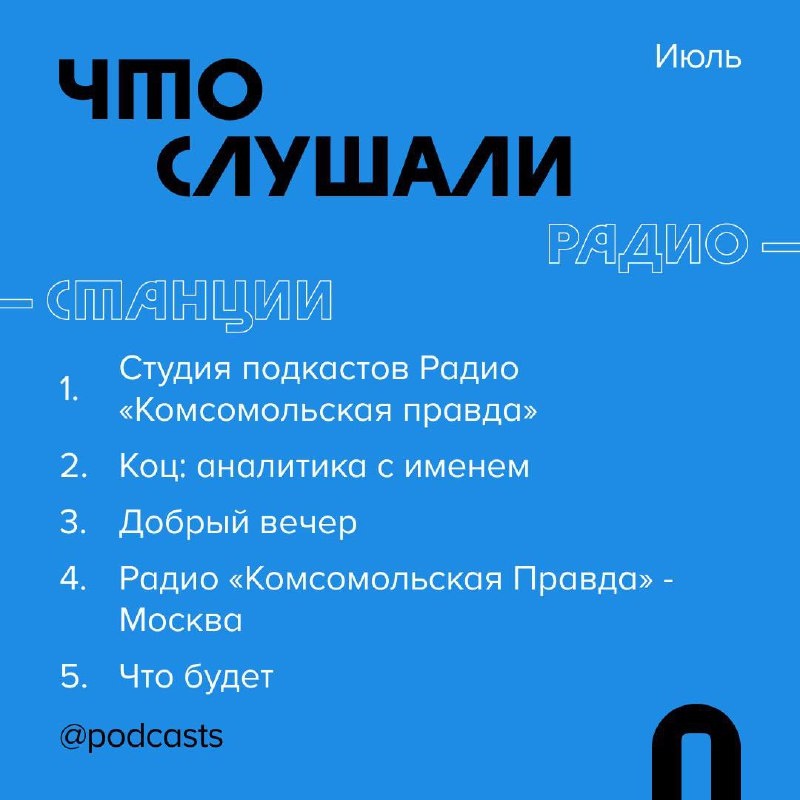 Друзья, это ваша заслуга! По итогам июля по данным сервиса podcast.ru весь топ подкастов от радиостанций заняли передачи Радио "Комсомольская правда". В том числе в пятёрке лучших - моя программа "Аналитика с именем". Спасибо всем моим слушателям и зрителям за доверие! Если вам удобнее слушать, чем смотреть и читать, подписывайтесь на мой подкаст на любой удобной площадке, чтобы не пропустить новые выпуски! Подписаться можно тут