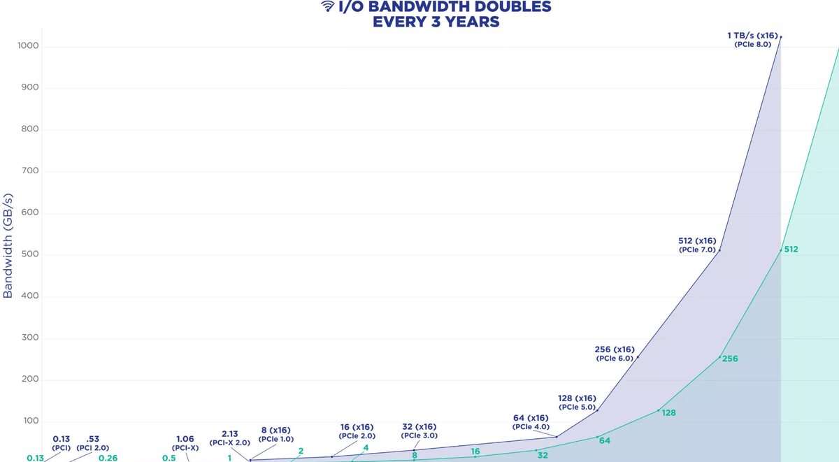 PCI-SIG уже определил ключевые целевые характеристики PCIe 8.0. Среди них — скорость передачи данных 256 ГТ/с, что может обеспечить двустороннюю пропускную способность до 1 ТБ/с в конфигурации x16.