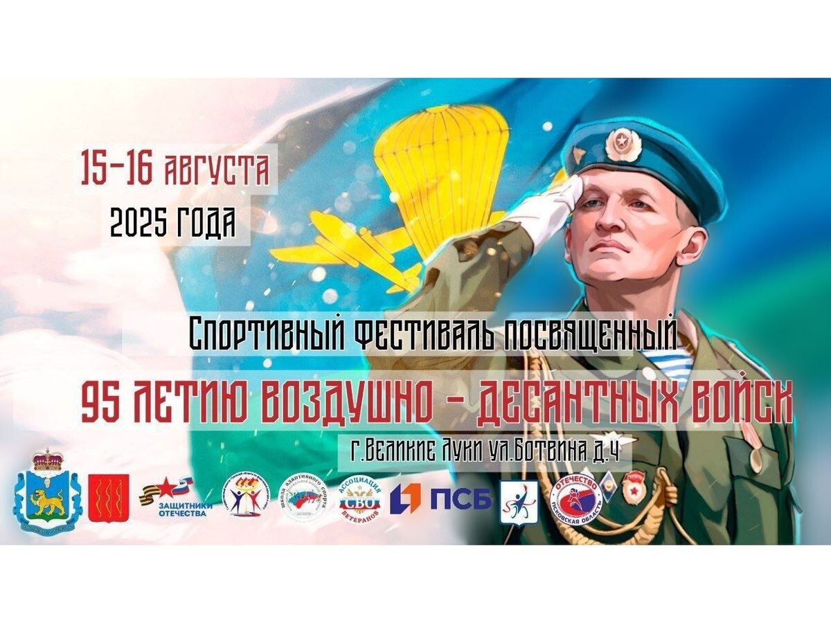 В Великих Луках состоится спортивный фестиваль, посвящённый 95-летию воздушно-десантных войск ✨ 16 августа в Великих Луках пройдёт спортивный фестиваль в честь 95-летия ВДВ. Участников ждут соревнования по армрестлингу, пауэрлифтингу, стрельбе из лука, дартсу и волейболу сидя, а также кофе-брейк. 🏟️ Торжественное открытие в 12:00 в спорткомплексе «Стрелец». Регистрация до 10 августа по ссылке: https://forms.yandex.ru/u/6870174beb61466e618f8cc6/. 🚌 Для псковичей предусмотрен трансфер 15 августа в 15:00 от ул. Л. Толстого, 31А. Организаторы: Ассоциация ветеранов СВО, Минспорт, фонд «Защитники Отечества» и ПАО «Банк ПСБ». 👉Подписывайтесь на ВЛуки.ру