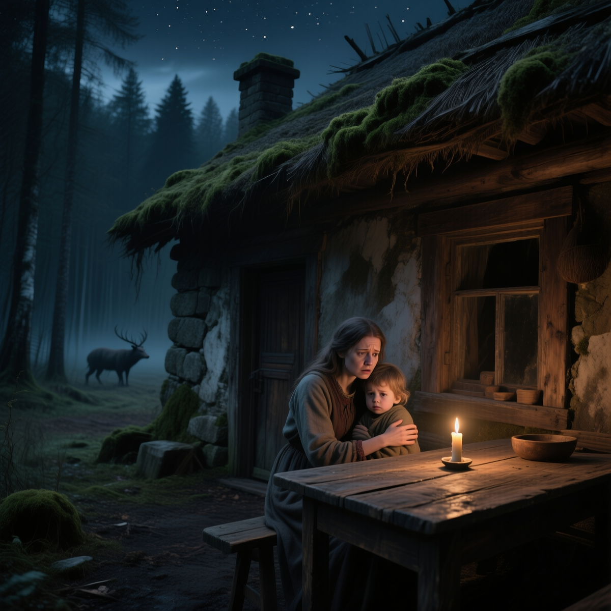 Но стоило ей открыть дверь — за ней уже не было леса. Ни дороги. Ни машины. Только старая деревня, мёртвая, заросшая, полуразрушенная. В окнах — ни огонька.