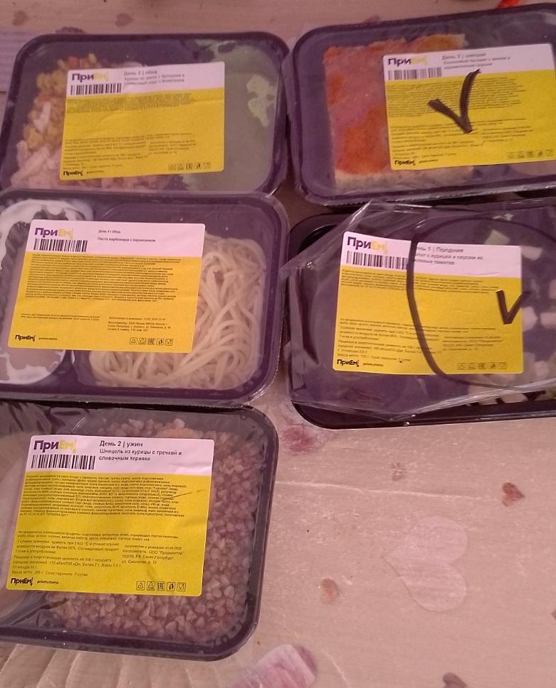 Избегаю готовки 😀 На прошлой неделе я заказала готовую еду через сервис Приём. Как и в прошлый раз перешла по ссылке из приложения Магнит, оплатила картой Т-банка. Взяла 8 блюд за 2790 руб., 1550 руб. вернется кешбэком от Т и 900 баллов от Магнита, ещё и 1000 баллов Прием подарил. Сейчас акция в Магните закончилась, но можно заказать по ссылке и получить скидку 500 руб. Всё, что успела сфоткать) Состав разный, соусы в основном с ешками. На завтраки был большой кусок бананового бисквита с маком, сэндвич с курицей и яйцом тоже хорошего размера, на обеды и ужины курица с булгуром, курица с кускусом, куриный шницель с гречкой, карбонара, салат из айсберга, курицы и томатов. В общем, сплошная курица 😀 Супов очень не хватает 😏 Порции средние. Муж объелся курицей с кускусом, я ем больше, поэтому я ещё добавляла себе хлеб, свежие овощи). За полную цену я бы не купила, с кешбэком мне очень понравилось, взяла бы ещё) В субботу ходили праздновать мамин день рождения в Токио-сити, она его л