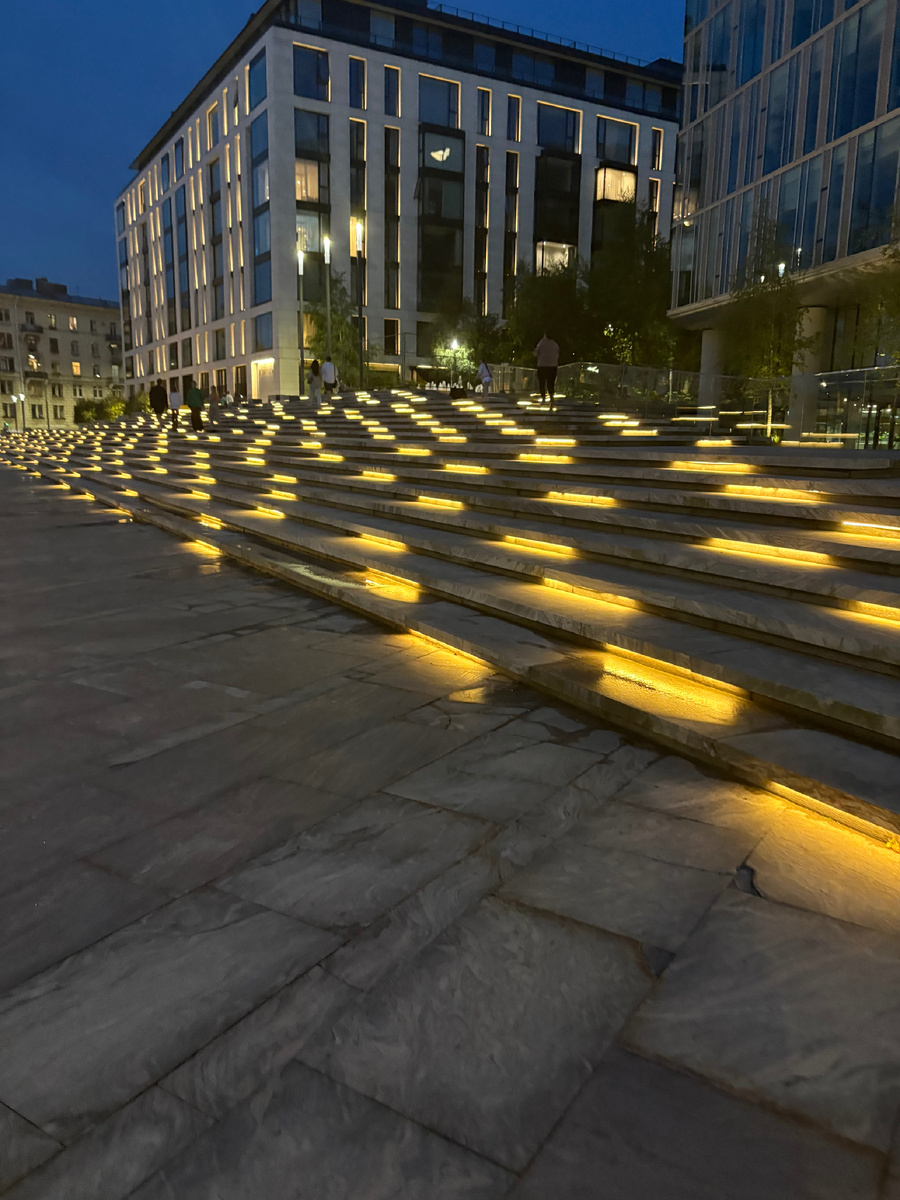Где-то между величественными просторами Невы и ритмом Петроградской стороны, по адресу набережная Адмирала Лазарева, 22, притаился неожиданный сюрприз. Это не просто точка на карте, а маленький, уютный мир, спрятанный в складках городского ландшафта. Забудьте о протяженных променадах – здесь царит атмосфера интимного открытия, где каждая деталь создана для того, чтобы замедлить шаг и порадоваться моменту. Сердце пространства: Волшебная Лестница Главной героиней этого места, безусловно, становится лестница. Но это не просто функциональный спуск. Она – арт-объект, сцена, место встречи. Ее широкие, плавные ступени манят присесть, расслабиться, наблюдать. А когда сгущаются сумерки, происходит чудо: лестница оживает под мягкой подсветкой. Свет, встроенный в ступени или боковые ограждения, льется теплым сиянием, рисуя на камне таинственные узоры. Она превращается в сияющий амфитеатр, создавая невероятно романтичную и фотогеничную локацию. Вечером здесь собираются люди, чтобы насладиться э